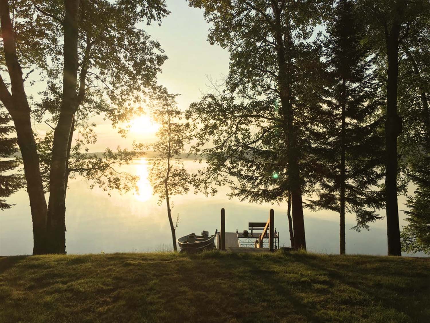 清晨,当我们从高速公路拐入林区,映入眼帘的是一片金黄的秋色:参天的古树,枝蔓交错,灿烂的阳光透过摇曳的树叶间隙,把万道碎金般的余晖洒在大地上,不由得使人想起“树树皆秋色,山山唯落晖。”的诗句来。美加边界一线的森林已渐露深秋醉人的秋景,枫树吐出一片片金黄,接着,一场霜下来,秋色便以漫山遍野之势,像吐出一片片红红的火焰般地极尽绚烂地向南方铺陈,显现出一幅“一带江山如画,风物向秋潇洒”的动人画卷。地面上的一棵棵蕨,那欧龙牙草和紫罗兰丛生处也显出苍笼和桔褐的色调,预示着节令的变幻。