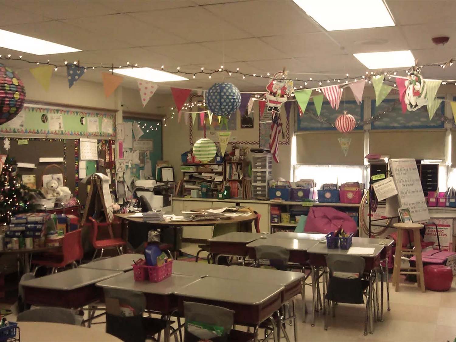 在教室的走廊一侧是孩子们一个个的衣柜书包箱子,另一边墙上贴满了很多低年级学生制作的画或美术习作,意在培养孩子们的想象力和创造力。美国的课堂也很生动,不全是老师传授,还注意教师与学生间的互动。当我们来到教室,来到孩子们中间,他们为我们举行了热烈的欢迎会,在学校体育馆厅内先由校长致欢迎辞,后来由教师主持要求学生互动式提问,请我们作答。我们的翻译问孩子们有没有坐过飞机,坐过几小时,12小时以上的请举手,只见一半以上的孩子都举起小手,还有1/3多的孩子到过香港,孩子们所提问题十分广泛,而且人人争着发言,老师也尽量启发学生们的思维和想象。为使更多学生参与,将学生们分成几组,我们中国客人也分成几组,宾主围座在一起互相讨论,甚至交换美元硬币和中国硬币。