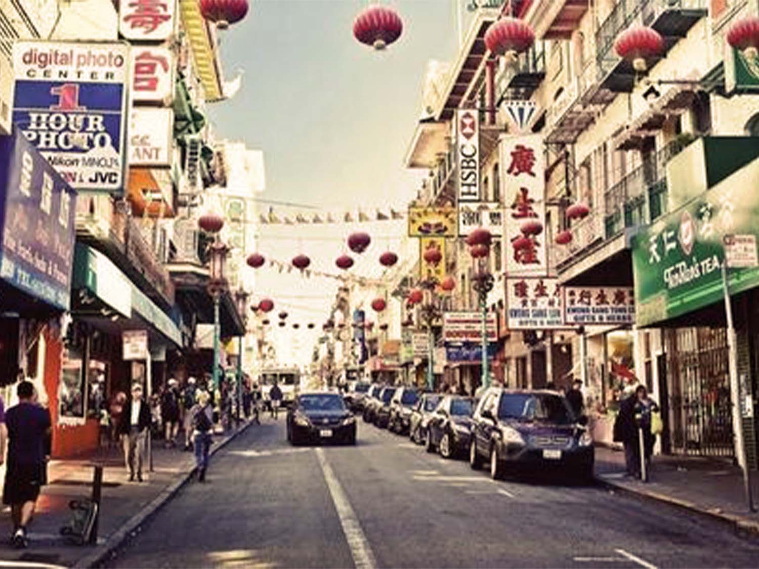 这里由于是淘金之地,而淘金人又来自世界各地,因而从建城之初就有了多民族杂聚的特色,当地人不仅能包容多种思想、意识、行为,还以宽容的姿态去理解别人,学习他人长处,因而产生了多种风俗并存,你中有我,我中有你的氛围。这个城市的少数民族以华人、墨西哥人、菲律宾人最多,约占人口的一半。其中华人约占12%,因而形成了中国城-唐人街,除此外还有日本城、意大利、拉美人的传教团区、黑人破落的“猎户据点区”、“西增建区”等。这里的华人以广东藉最多,是当年被卖到美国修铁路的华工,他们到此要先被隔离在近海的天使岛上以检疫为名,长期遭受囚禁,被关在狭窄的木屋中苦渡时日,至今壁上还留下许多华人悲惨的诗句,痛楚之情催人泪下。与美国其它城市的唐人街相比:华盛顿的冷清;纽约的拥挤混乱;洛杉矶的分散而欠规整,独有旧金山唐人街整齐而热闹堪称全美甚至全世界最大的中国城。我们居住的酒店就位于唐人街口的牌坊处,孙中山先生所题“天下为公”的琉璃牌坊上盘有数条中国龙,很有中国味道。唐人街中药铺、绫罗绸缎、古董画廊、黄金珍珠·····一间间店铺琳琅满目,大街上写着中国字的大招牌和广告,这里的人都通讲广东白话,仿佛让行人置身中国。生活在此的老年人很不习惯走出去,有的人甚至几乎一句英文也不会讲。因为聚居在唐人街曾经是百年前国人在美国的主要生存方式,这可谓旧金山独特一景。