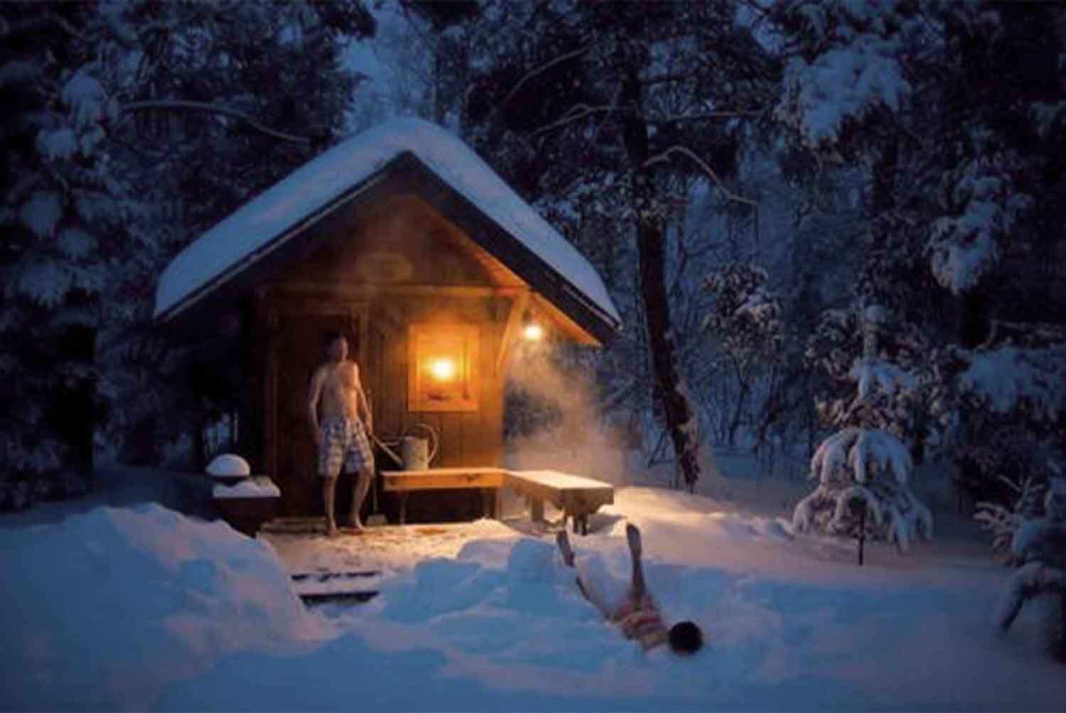 在芬兰一般高级酒店都有桑拿浴室,是用电炉烧热了石头再来浇水,产生热气腾腾的蒸汽的。在普通老百姓家也有这种桑拿浴室。传统的桑拿浴室都设在森林的湖边。一间标准的桑拿浴室分内室和外室。外室有一处烤火的炉子,可用以取暖和烤吃的东西,内室仅有一扇木棉门和顶部一个很小的出气口。内室中央是一个烧木炭的火炉烧红约1~1.5立方米的石头,然后取出来浇上水,石头面上马上就会蒸汽弥漫。内室四周和顶棚都是白桦木板壁,下面有三层木坐位,人们不断地浇水,热石头表面吱吱作响,产生大量蒸汽,在里面蒸上一断时间,人们就会大汗淋漓,由于有大量盐份排出,用手一摸,全身都是滑溜溜的。桑拿浴内室的三层坐位数最下层温度最低,越上一层温度越高,最高处有时可高达70度。一般开始从低处坐起,慢慢升上一级,只要人能忍受,可座上最高一级。使汗出透后,就到外室的冲凉房先用热水冲一下身体,然后马上跑到室外的冰湖内游泳,有时湖面结了冰就到冰面上跑一圈,这时整个人就象刚出笼的包子一样,一团白气,这真的是冰火两重天式的桑拿。由于在内室高温的环境呆久了。出去雪地里,赤身裸体也不觉寒冷,一般芬兰朋友可在冰面或冰水里呆十几分钟,这次我也围着白浴巾跑到冰面上呆了3分钟。从雪地回来又到外室烤火,吃烤热狗、喝饮料,边吃边喝,这样反复一冷、一热,三四次直到通体舒畅,一看表已持续了三个多小时才结束桑拿。据说这种桑拿浴由于出尽了一身汗,将体内毒素也通过汗腺排除体外,因而人也不易生病。