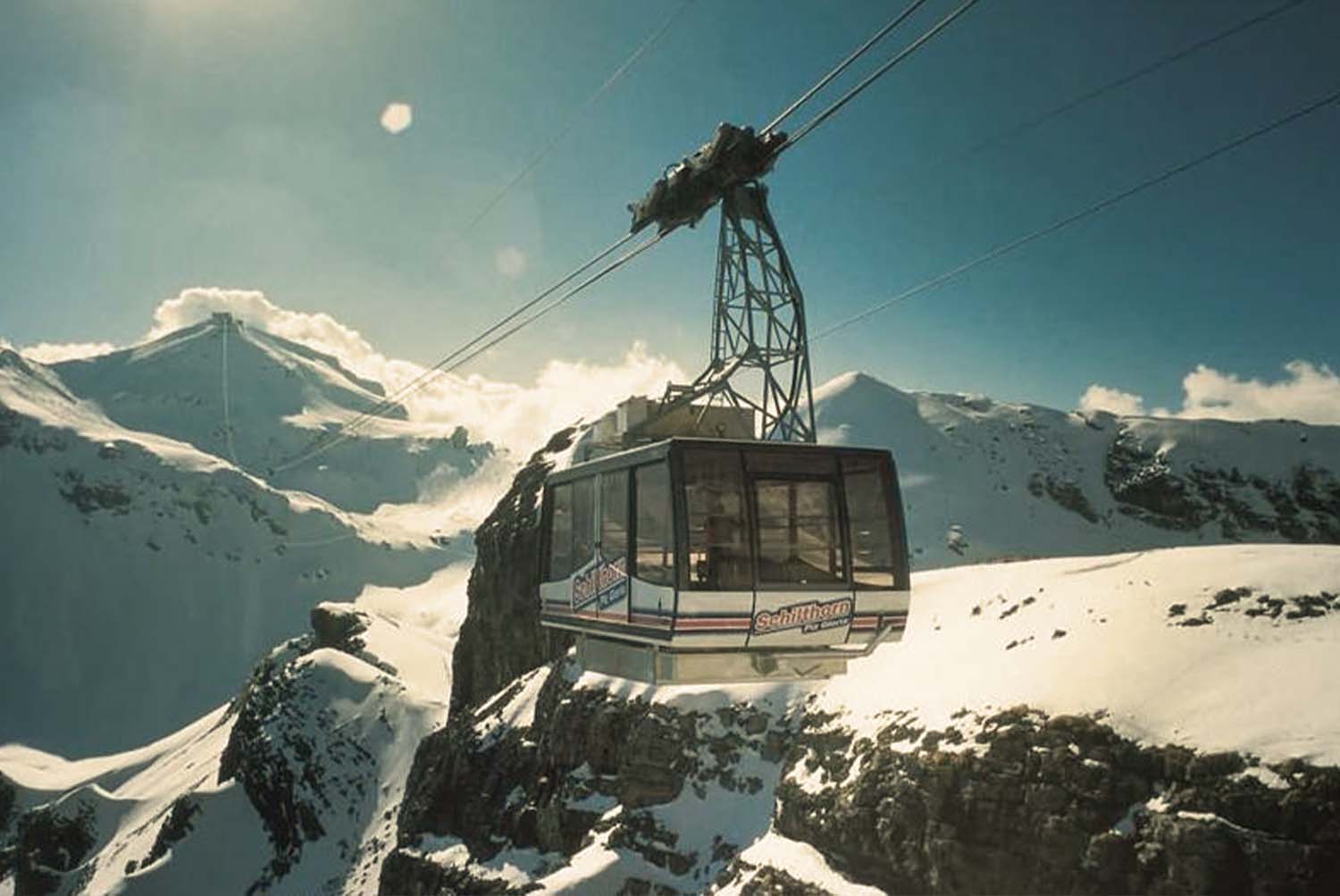 从Are镇到雪山顶有几条缆车相通,人们从山脚乘缆车直上山顶,然后顺着险竣的雪坡向下滑,每个缆车箱可以坐60多人,载重可达681可见保险得很。缆索上大约60m-一个缆车塔,每人票价90Kr.人们穿着红红绿绿的滑雪衣裤,脚蹬大皮靴带着各种雪具上山,有的全家老少一齐上阵,从4~5岁的小姑娘到60〜70岁的老人。由于我们是来凑热闹的,不会滑雪也没有雪具,因而也是唯一从山顶乘缆车下山的游客。