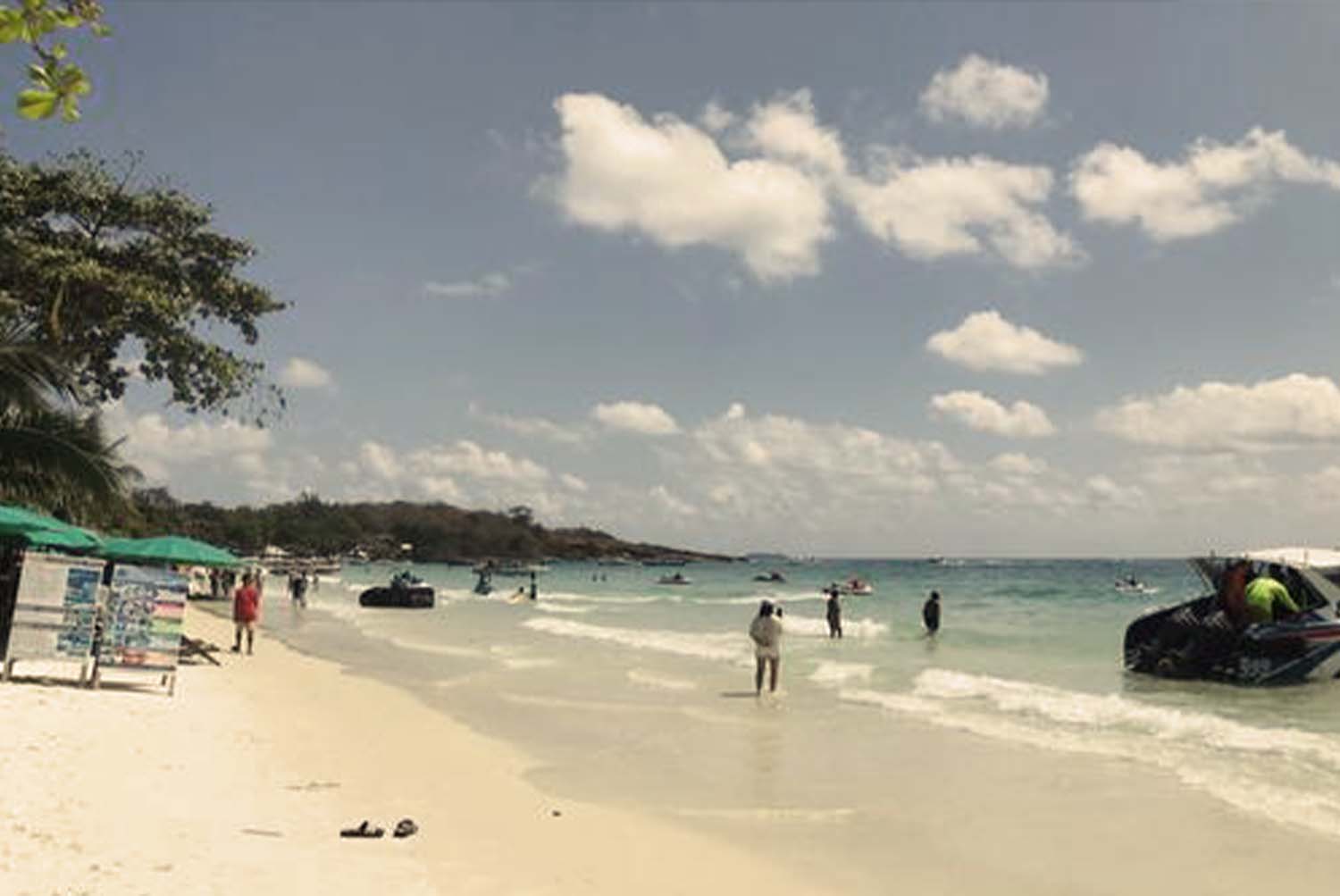 为寻找“东方夏威夷”这一片净土,我们从芭堤雅驱车南下到沙美岛浴场,沙美岛英文名:“Samet”,该岛形如一把长柄斧子。西侧有长达数里的沙滩,这里原是皇室避暑圣地,后来一半开始向游人开放。由于刚开放,它没有泰南布吉岛出名,但人不多是一处未受污染的景点。我们坐上游艇向沙美岛驶去,映现在眼前的海一碧万顷,泰国地处暹罗湾,并无我国东南沿海的台风,因而风平浪静,我们快到沙美岛,游艇慢下来,机仓的马达声也消失了,游艇在海上漂浮起来。导游向我们分发了吊鱼的用具,并没有鱼杆,于是我们抛下鱼铒开始了海吊,不一会儿,一条条海鱼,大虾,螃蟹被吊了上来,几乎人人都有收获。于是大家兴趣更高,又抛下鱼铒、鱼丝,靠在游艇拦杆上,目不转睛地注视着海面的浮漂……结果我们钓到一大盆鱼获,作为我们大家中餐的原料!