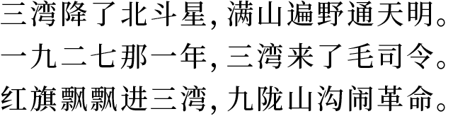 井岗山与其它山相比并无特别的风貌,然而在当年它是傲立于漫天皆白的暴风雪中的一支红梅;是插在血雨腥风的白色恐?之中一面红旗!井岗山-革命的摇篮,在这块土地上保存了革命的火种;孕育了革命的风暴;酝藏着胜利的希望;指明了前进的征途!今天成为中国人民向往的革命圣地。
