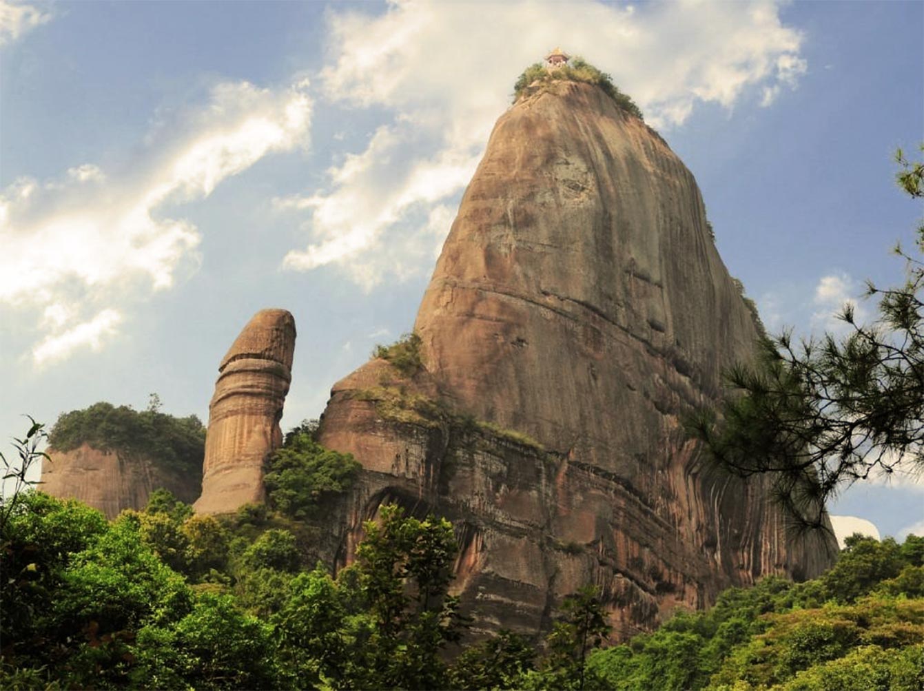 10月7日第二天,我们到曲江县城以南22公里处的南华寺参观,该寺坐落在大庾岭支脉的山麓中,为印度高僧智乐三藏主持所建,其选址方法与中国古代堪舆学的选址方法有异曲同工之妙,寺后的“玄武垂头”,左右两边左青龙,右白虎,山形如龟、蛇、大象,前面众山“来朝”,如一群和尚跪地参拜,这种格局堪学称为“万佛朝宗”。这里进门前有一座石砌的南华摊寺的三门牌坊,四门柱前各有一座石狮子。穿过一座石桥是八角小亭:五香亭,隔着有参天古树的庭院是天王殿,然后又是一个种满大树,鲜花的庭院,这里有一棵水松有40多米高,已经有500多年历史了,我们请别人在大雄宝殿前为我们一家三口照了张像。在大雄宝殿左侧有六祖殿,原名祖堂,北宋真宗时为记念禅宗六祖惠能而建,殿内供奉着一尊高2..5米的六祖坐像。在大雄宝殿后左有鼓楼,右有斋房,正中是供奉六祖慧能真身的主殿。