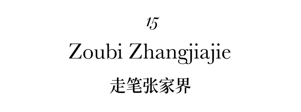 在袁家界中坪与下坪交界处有一处藏而不露的景观“后花园”。我们在崖间翠竹丛林中向下穿行,突然会被一面石壁挡住。正疑无路可行时,却见绝壁拐弯处洞开一扇满月状白石门,穿门而过,眼前突现数十座奇峰参差耸立墨绿之中,令人惊奇。这上百座大大小小的石峰在峡谷中静静矗立,直插云天。真的似:“青冥浩荡不见底,日月照耀金银台。霓为衣兮风为马,云之君兮纷纷而来下。”的幻化……