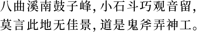 我们先座飞机到福州,再转乘旅行大巴去武夷山。一进武夷山只见山坡上河谷里都种满茶树,据说武夷山出名茶,茶名大约有千种,最出名的是:“茶王大红袍”。我们先来到山南虎啸岩,这里峰岩峥嵘,陡峭凌空是这里屈指可数的独具泉石天趣之佳境之一,这里有一处“语儿泉”现用石碑刻诗在泉边:“夜半听泉鸣,如与小儿语,语笑笑不春,滴滴皆春意。”。听刘导游介绍这里之所以叫虎啸岩,还有一段古:说古时该岩上有庵,一天庵主正在闲话,忽闻空中传来虎啸声,推开庵门一看,只见一白发白须老翁骑于虎背,从天上悄然而下,然后盘腿打坐于巅峰之上,任虎在旁狂啸。庵主们吓得魂飞魄散,尽打哆嗦。不一会儿虎啸声息,庵主们才探头一望,老虎与老翁早已不知去向,从此定庵名为“虎啸庵”所在的峰岩也成了“虎啸岩”。宋朝丞相李纲游虎啸岩,听了庵主介绍便题诗曰:“昔年雕虎啸幽岩,千里清风皱碧潭。”拾级而上在一山丫处有一小桥,名曰“定命桥”导游小刘告诉我们这桥决定人的命运,过得此桥才有好命运。从“定命桥”下来到灵岩的一线天景点,通过一段仅能容一人通行坡道狭缝探身伏?洞,只见洞内甚为宽大明亮,仰视崖顶见亮光来至数十丈高的崖顶裂罅。罅中壁如刀削,仅宽一尺,从缝中漏进一线天光,如空中碧虹,这就是“一线天”,于是我也赋诗一首赞曰: