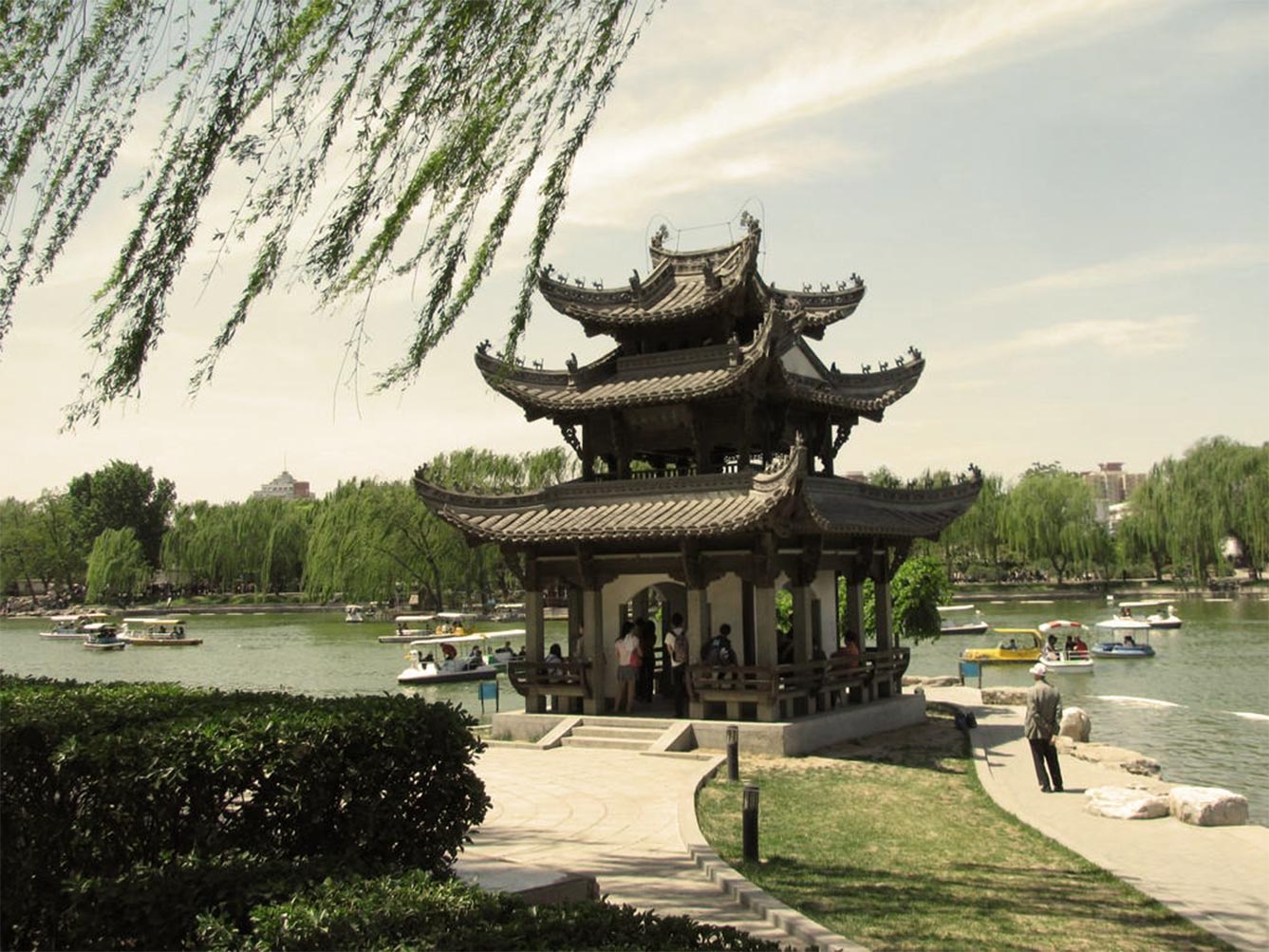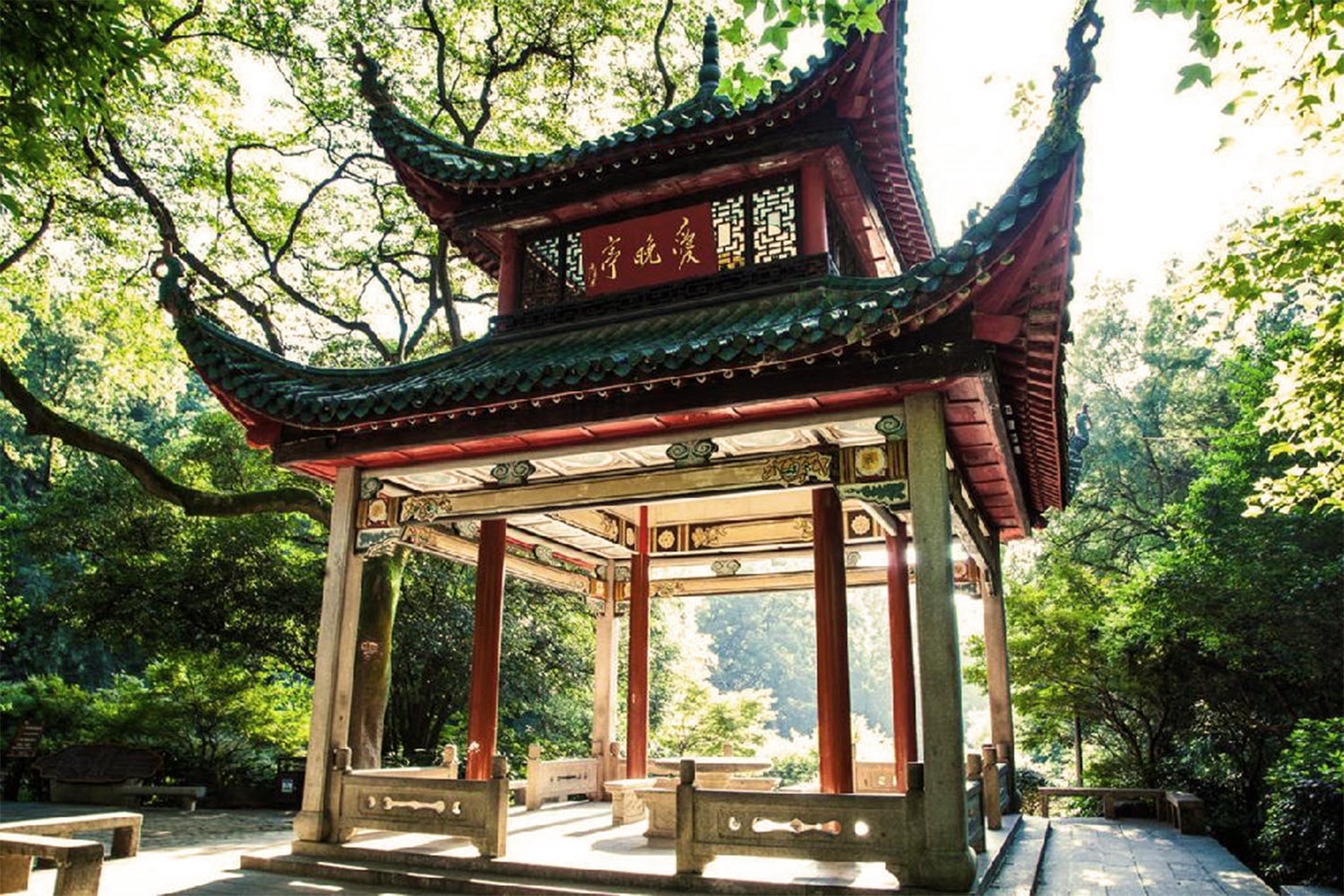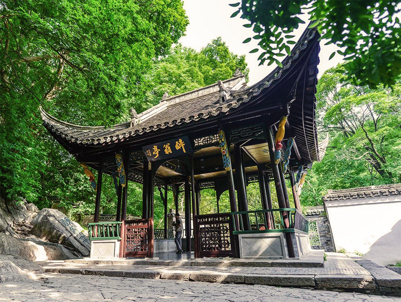 中国的四大名亭,包括杭州西湖的湖心亭;安徽滁县琅琊山的醉翁亭;北京的陶然亭;湖南长沙岳麓山半腰的爱晚亭。西湖湖心亭又名振鹭亭,位于外湖中心的小岛上,被称作“湖心平眺”是西湖一大景观。我是1977年9月同轻工部广州设计院的冯尧鸿、顾依礼、梁鸿等人赴上海、杭州进行我厂磨木,四抄车间设计收资时去过西湖湖心亭。该亭初建于明嘉靖31年(公元1552年),万历时重修。亭翘角飞檐,外观为两层,四面临水,周围广植时花木,亭映湖光山色,历来为诗人墨客所讴歌。明代张岱在《西湖梦寻》里赞美湖心亭之丰姿:“游人望之如海市蜃楼,烟云吞吐,恐滕王阁、岳阳楼俱无其伟观也。”清许承祖在《湖心亭》一诗中赞曰:“百遍清游未拟还,孤亭好在水云间。停阑四面空明里,一面城头三面山。”