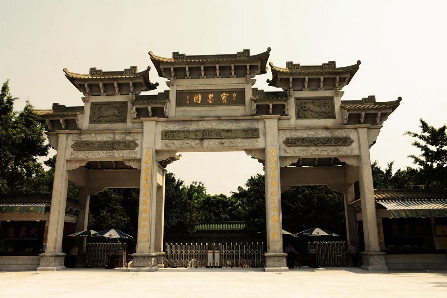 进入园内眼前是一座九龙石雕石桥,桥下水中飘浮的睡莲间游荡着几十尾锦鲤。过了桥正面有一个巨幅灰砖雕《吐艳和鸣壁》,工艺精湛。体现了“玉带横腰龙起舞,百花吐艳鸟和鸣。”的胜景。过了清心亭,有一青砖围成的庭院在曲廊边长着两株“玉堂春”,花色正茂,粉红色的花朵异常娇艳,我和养真曾在番禺大夫山顶的大草坪上见过这种花,当时觉得这种花即漂亮又少见,但一直不知其名,而现在居然在宝墨园内再次见到,并从悬挂的木牌上,知道其名。沿着长廊左边有龙图馆,室内陈列着“包工辗美”、“包龙图夜断奇案”等民间传说的腊像,做得和真人大小一样,表情栩栩如生。集中表现了百姓心中对清官的崇拜,赵泰来藏品馆珍藏有古今名画、书法、陶瓷、玉器等体现了中华文化源远流长。再往前有一名叫紫竹宛的小院,是孩子们捉鱼、寻趣的地方,后来我们也和海虹暄暄全家来过这里。也曾去捞过金鱼。穿过一道门洞只见一条长廊直通后院,后院是一派江南水乡的境象:远处的紫带石拱桥,湖里成群游曳的锦鲤,湖滨水上的紫洞画舫,湖心的喷泉。组成了一幅绝妙的:“一湖碧水海天秋,紫洞弦歌锦鲤游。”的风情画。在左边有一个玫瑰园,种植着各种各色的玫瑰。有红色的多为单瓣,有紫红的、白色的、黑色的、黄色的较贵重,少见!花冠大如蔷薇,花蕊甚密呈黄色,现正春末开花时节,只见满园娇艳馥郁,香气浓甜。我连忙为养真在花丛中照了两张像。