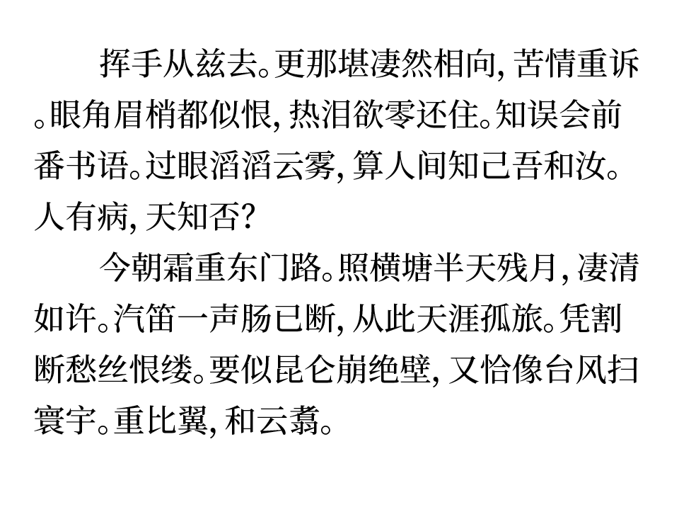 原来玉薇不理解在令人销魂的月下,诗人的心,怎么会这样空朦苍凉。现在她才体会到这是心情使然,玉薇也觉得这时那弯月牙儿似乎比过去更为苍凉、单薄,只洒下一地孱弱的月华,映衬着满枝飘飞的白色樱花。